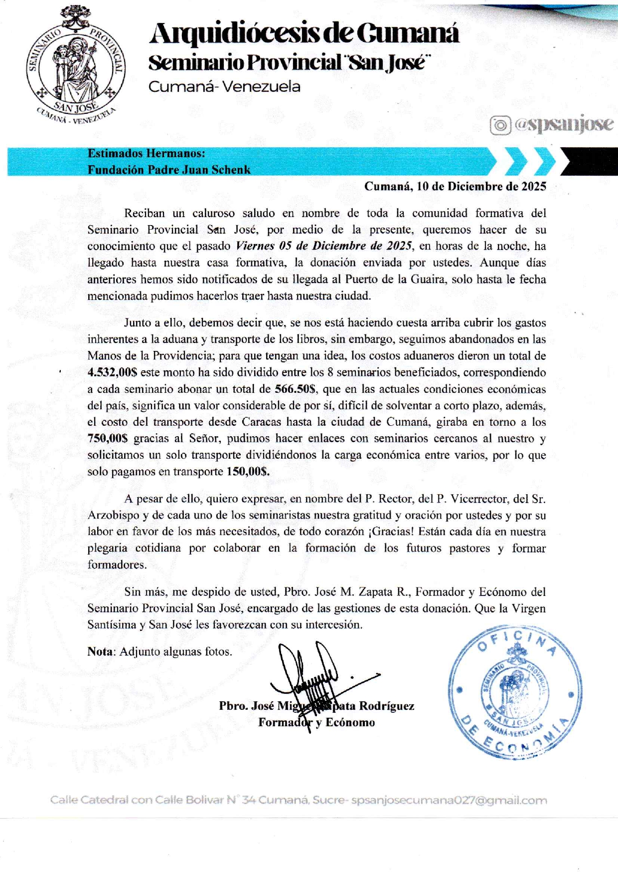 Han llegado los libros a la Archidiócesis de Cumaná – Seminario San José – Venezuela por admin | Ene 12, 2026 | Envios | 0 Comentarios Enviar comentario Cancelar la respuestaTu dirección de correo electrónico no será publicada. Los campos obligatorios están marcados con *Comentario * Nombre * Correo electrónico * Web